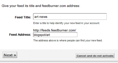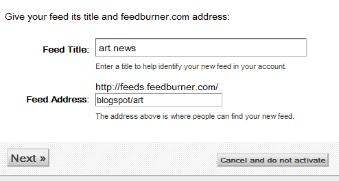 - Feed address: You can just leave the default setting from feedburner.